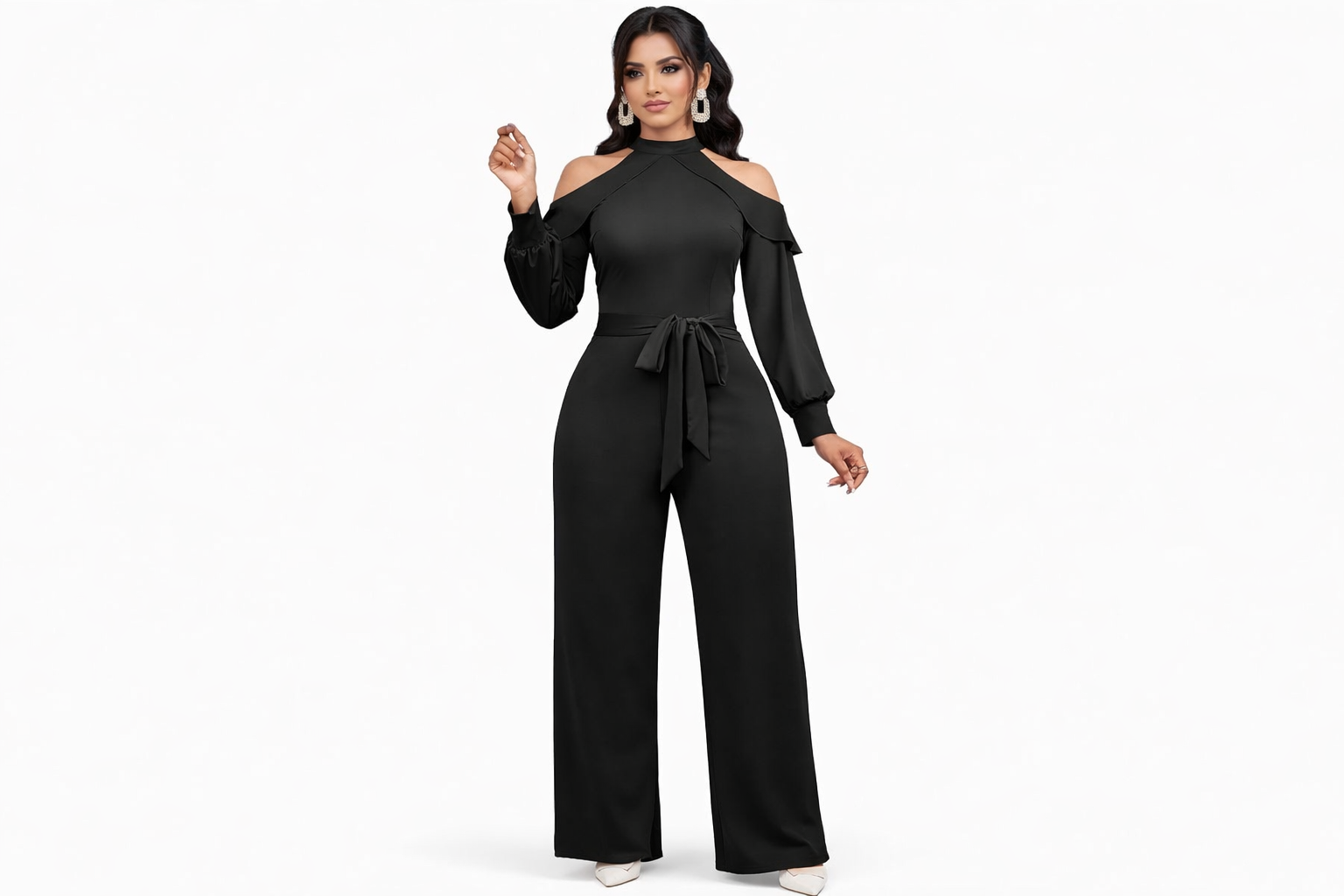 Elevate your look with this black elegant women’s jumpsuit designed to flatter your silhouette and highlight your natural curves. Featuring a refined long-sleeve design and a tailored fit, it delivers a sleek, dressy style that’s both confident and feminine. Perfect for everything from work and business events to parties, dinners, weddings, and evenings out, this versatile jumpsuit transitions effortlessly from day to night. Crafted for comfort and style, it’s a timeless wardrobe essential that pairs sophistication with modern appeal.